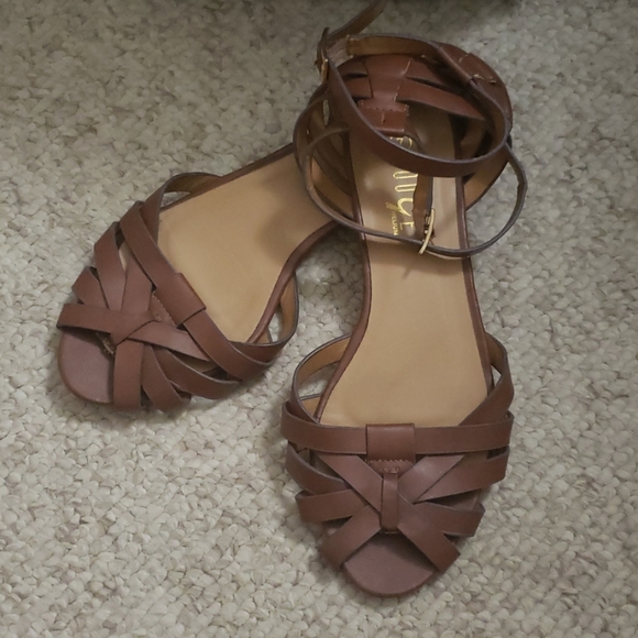 Peep toe strap flats. They are very comfy only wore them to an event have been used since.