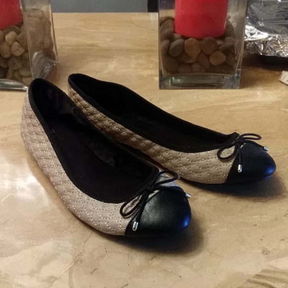 Black and beige flats Bow detail Quillted pattern