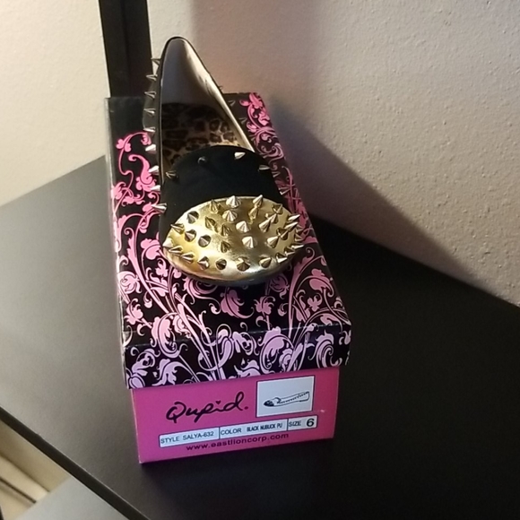 Black & Gold Spike Flats