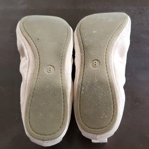 Pink suede flats. Gently used, bottoms are dark but they are in great shape