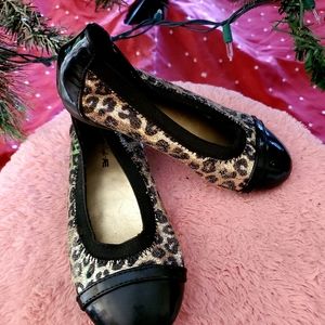 Pre-owned Black Leopard Ballet Flats - a bit faded and small tears - decent condition