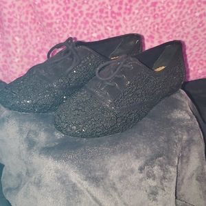 Beautiful sparkle underneath a pretty lace, with lacesπββ¬π€ Says size 5 but they are a whole size bigger so im listing as a 6 β£π lightly worn by a previous owner Super cute ππ₯°