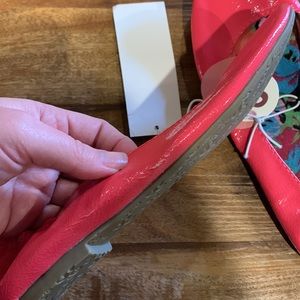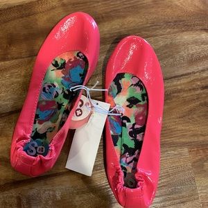 Flats. Bright coral color flats with colorful inside. Never worn, NWT. Cracks notes on the outside of right shoe from storage. Cracks aren’t noticeable with shoe on. See photos. Perfect for summer vacation!!☀️🌊