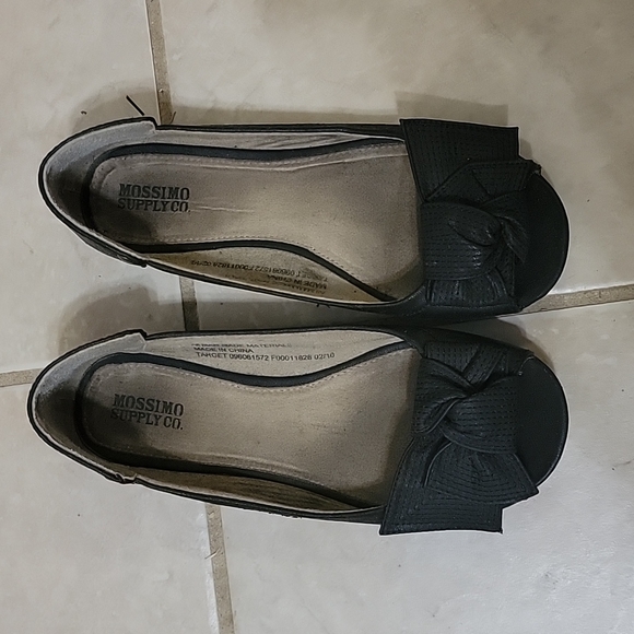 Black flats with open toe. Super cute just too narrow for my wide feet.