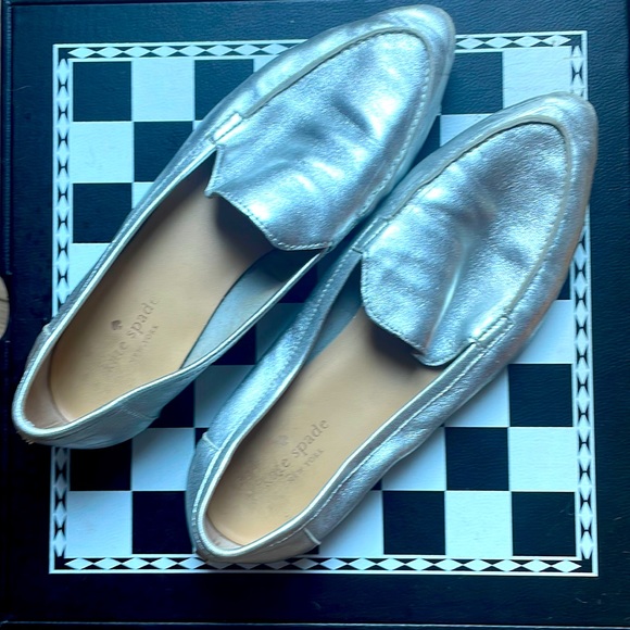 Silver Late Spade pointed toe leather loafers
