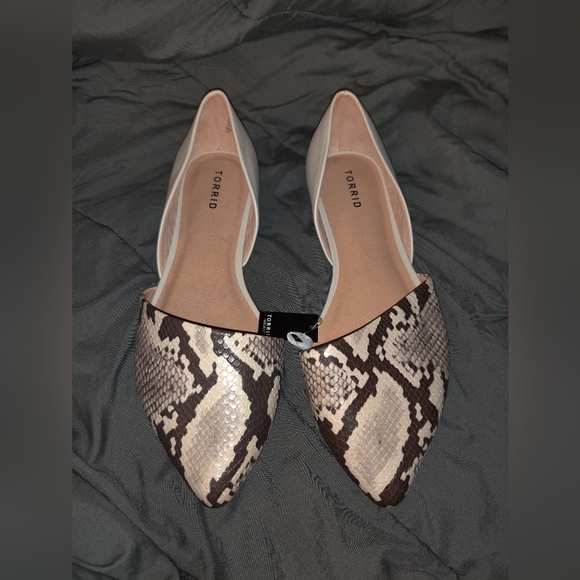 D'Orsay Pointed Toe snake skin print front Flats (WW)