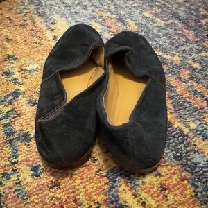 Nice shoes for work. Worn a fair amount but still in great condition! Just a little flattened from being in a bag with other shoes.