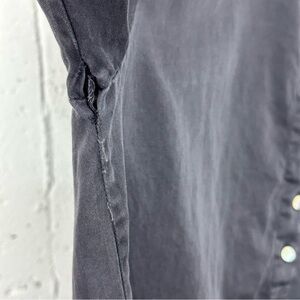 Flats by Jan Niemi Women’s Size Large Black Button Down Shirt Dress. It is faded and there is a hole in the armpit seam.