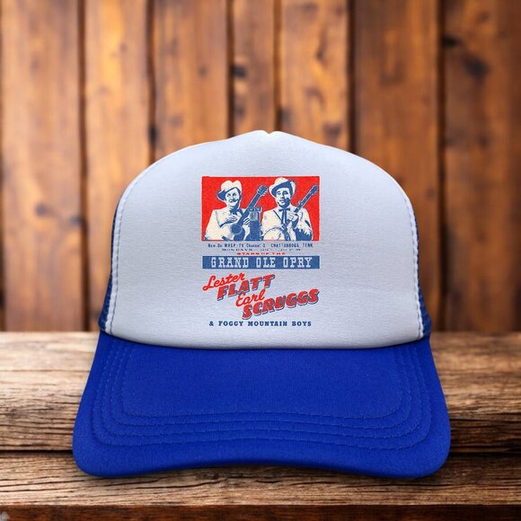 Flatt & Scruggs Foggy Mountain Boys Grand Ole Opry Unisex Trucker Hat Red Blue