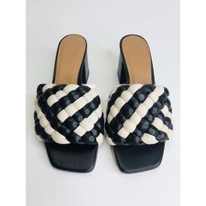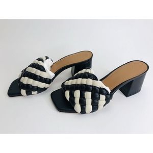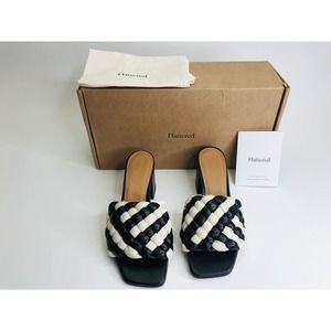 Flattered Odessa Black/ White Leather 37 w/ Block Heel