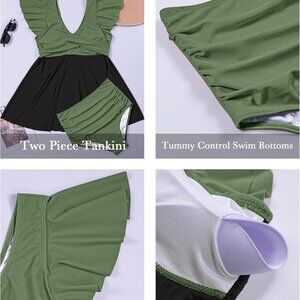 Flattering Plus Size Two-Piece Tankini with Ruffle Sleeves & Tummy Control