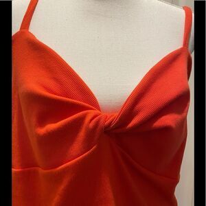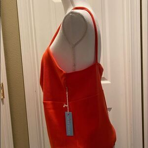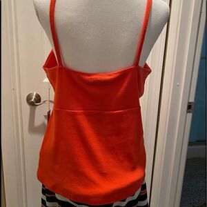 The cut of this top is so flattering. The Color is the perfect orange. The fabric is substantial and not see through. Size 3X fits size 18 58% cotton, 37% polyandry 5% spandex for comfort.