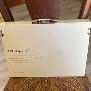 Stainless steel flatware, 24 piece, box never opened. In wood case, never opened.