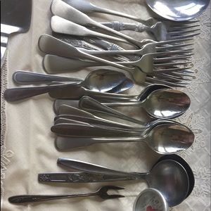 4 new utensils color blue , 9 forks, 16 knife , 9 spoons, 1 big & fork 1 big spoon, for salad, like new!!