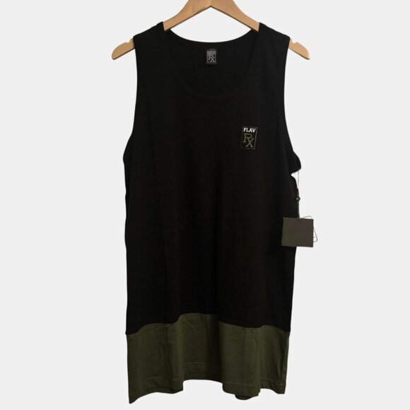 FlavRx Men’s Tank Top XXL Black Olive Colorblock Sleeveless Cotton Shirt