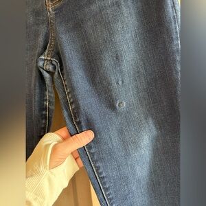 These are great jeans but there are 3 small glue spots as noted in photo. Not really noticeable when wearing.
