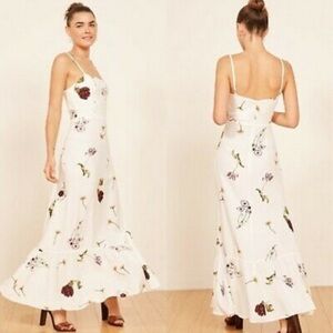 Flawed Reformation Prairie Gardenia Floral White Maxi Dress Boho Romantic Size 2