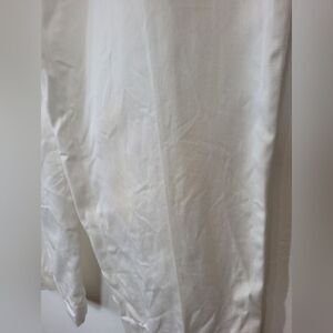 These Pants have some staining on the front. see all photos. could be a fun project to dye them or rework or upcycle. Color is off white, maybe eggshell. High waisted, straight leg. Structurally intact. True vintage. Tagged size 14 measures approximately 40 inches long 28.5 inseam (11.5 rise) 30 waist.