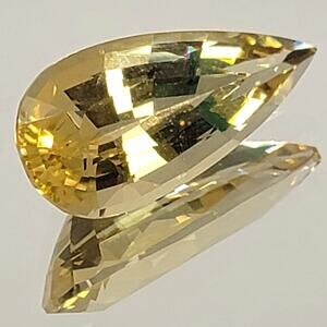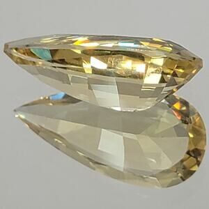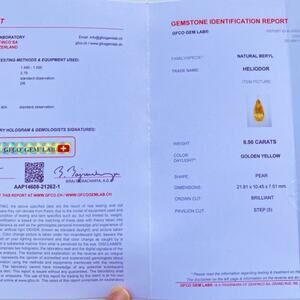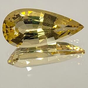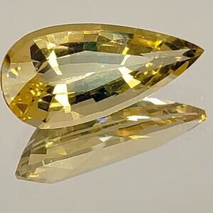 Heliodor is in the Beryl family, along with Aquamarine, Emerald and Morganite, among others. It is often called the "Golden Beryl" or the "Golden Emerald". This beauty is internally flawless (IF), a beautiful golden yellow color, and unheated/untreated in any way. It is a certified stone and the certification is included in the sale. Weighs 8.56 Carats, measures 21.81 X 10.45 X 7.51mm, and is a Pear/Pavilion cut. This is a gorgeous, stunning, certified gemstone!