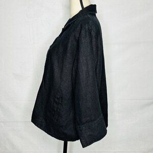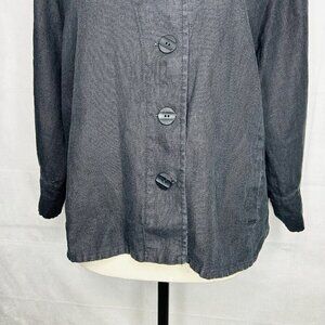 Flax 100% Black Linen Jacket Womens Sz M Button-Front Lagenlook Slash Pockets