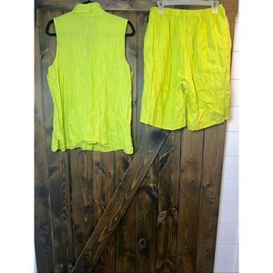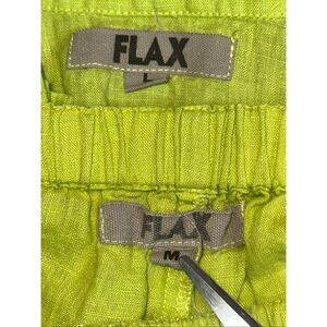 Flax 100% Linen 2 PC Shorts Set Lagenlook Minimalist Relaxed Sz M/L -Lime Green