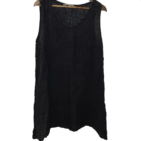 Flax 100% Linen Black Breezy Gauzy Sleeveless Tunic Dress Top Minimalist Size M