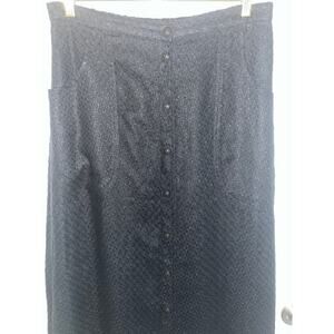 Flax 100% Linen Black Button Front Midi Skirt Sz M