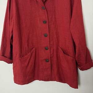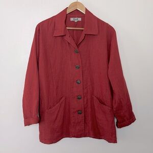 Flax 100% Linen Jacket Button Down Relaxed Fit Rust Coastal Lagenlook Size M