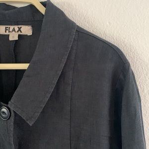 Flax 100% Linen Lagenlook Jacket/ Blouse/ Blazer Size S Black Button Down Shirt