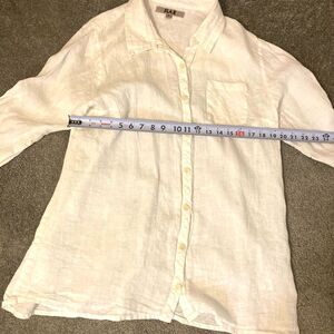 Flax 100% Linen Textured White Long Sleeve Ivory Classic One Pocket Button Down