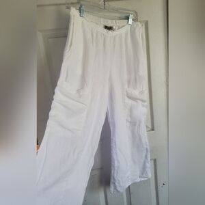 Flax 100% Linen Wide Loose Legg Womens Pants, Size Small, with side pockets,in excellent condition