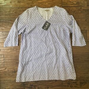Flax 100% Linen Women's Tunic Dress Large Purple 3/4 Sleeve Beach Coastal