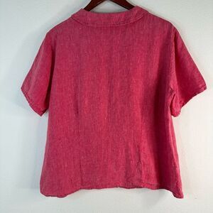 Item: Flax 100% Linen Pink Button Front Top Womens Medium Minimalist Lagenlook Chic