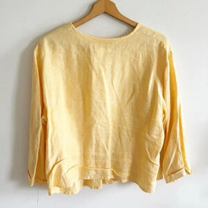 Pale butter yellow button down top with matching maxi skirt. Both made with 100% linen. Loose flowy fit. Lightweight breathable material. Skirt has elastic waist. Top is a size large and skirt size medium (but fit like a large)