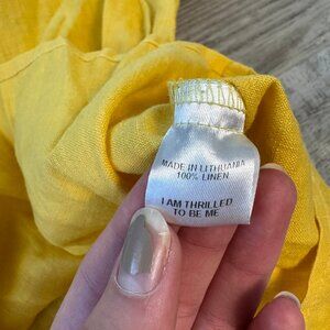 Flax 100% linen yellow short sleeve oversized top V-neck size medium C41