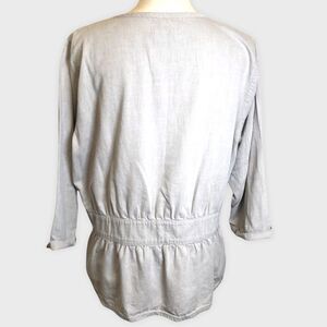 Flax 100% cotton button front blouse with defined waist double seam for shape. Great cool summer top.