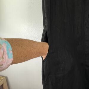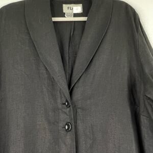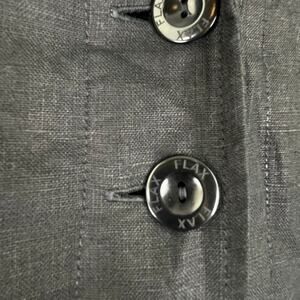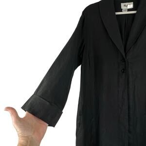 Flax Black Button Down Long Duster Coat Lightweight 100% Linen Large Oversized