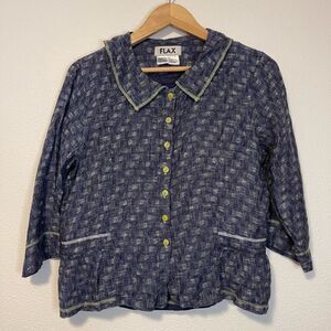 Flax Blue 3 Piece Linen Set - Capris, Tank, Cardigan Size Small