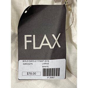 Flax Bold Daylily Pant Large L White Linen Elastic Waist Lightweight Comfort New
