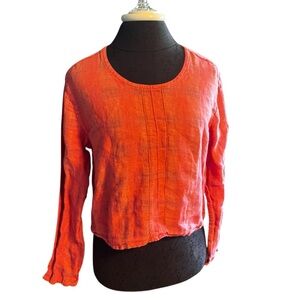 Flax Coral Linen Scoop Neck Pop Over Top Small