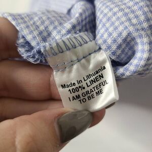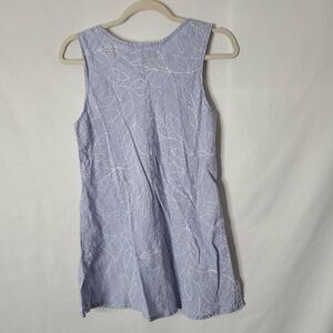 Flax Dainty Gingham with Leaf Pattern 100% Linen Sleeveless Top Flax size S
