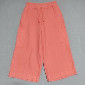 Flax Full Time Pants Linen Crop Wide Leg Drawstring Cargo Womens Small Mango