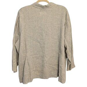 Flax Generous 2G Womens Button-Down Shirt 100% Linen Gray Long Sleeve
