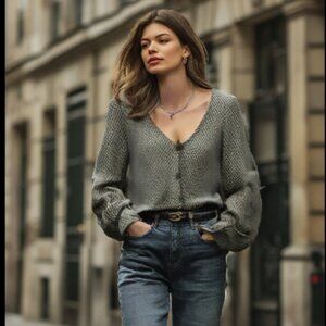 Blouse is a fuller cut and has a gorgeous hang to it. Whimsical, yet classy and sophisticated.