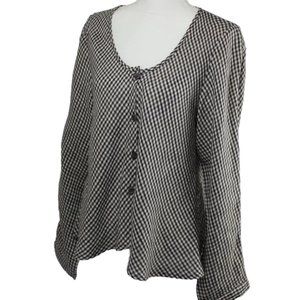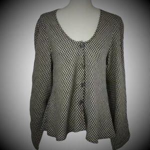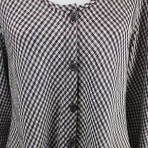 Flax Gingham Plaid Long Sleeve Fuller Cut Blouse, Size Medium (EUC)