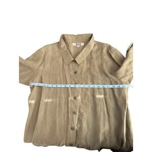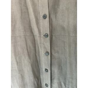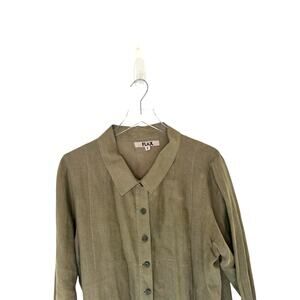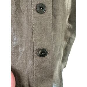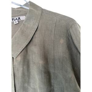 Flax Green Linen Lagenlook Coastal Grandma Long Sleeve Button Front Blouse Small
