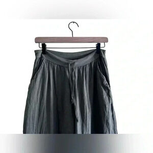 Flax Green Linen Steam Crunch Wide Leg Pants Size s