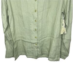 New With Defects! Flax Green Long Sleeve 100% Linen Lagenlook Button Front Shirt In A Size Petite !