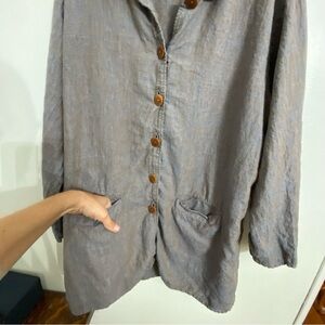 Flax Lavender Taupe Linen Shacket Button Down Top Artsy Oversize Lagonlook Med.