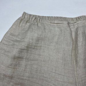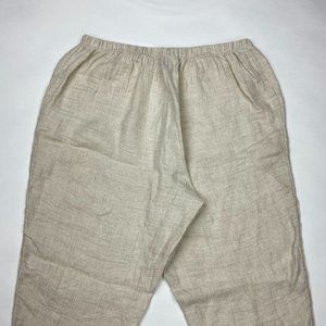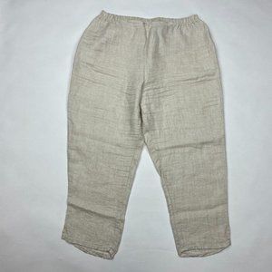 Flax Linen Ankle Pants Tapered Leg Elastic Waist Flat Front Lightweight Women L